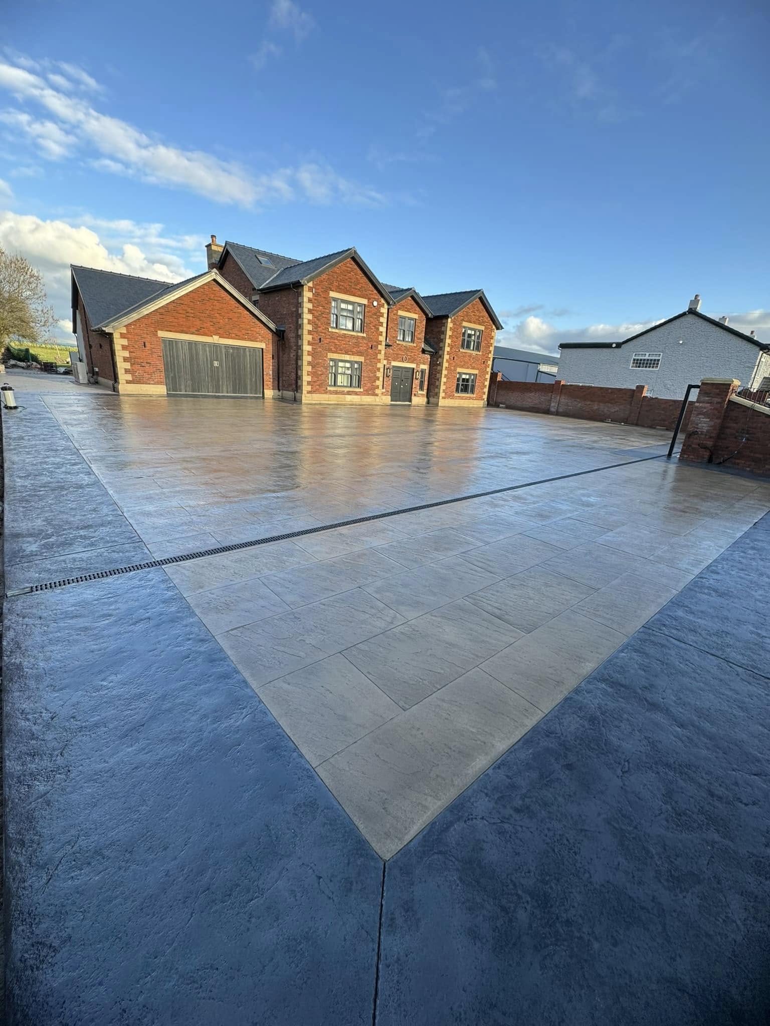 Traditional imprinted concrete long driveway – Cottam