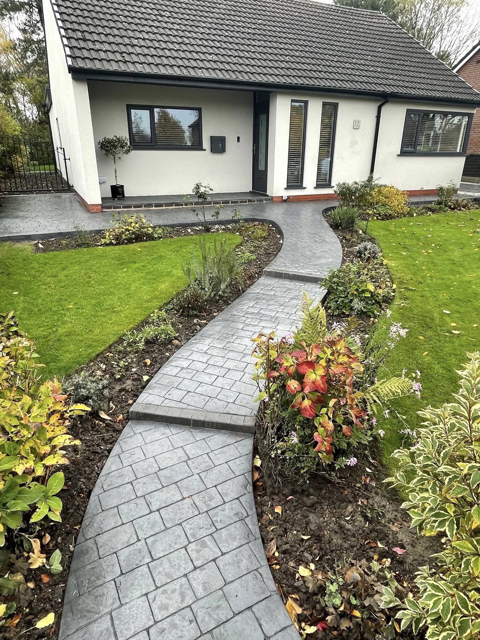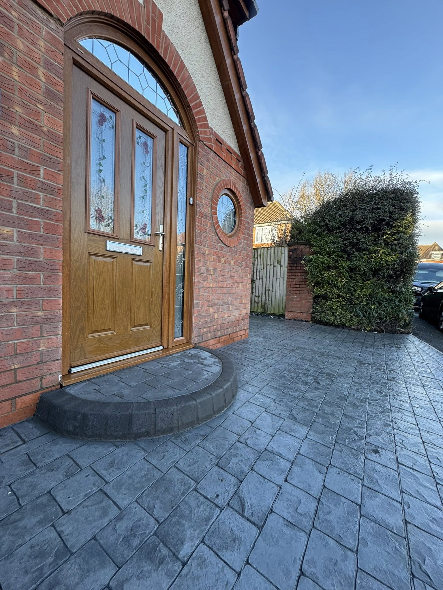 Complimentary colours on the driveway to compliment the house.